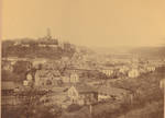 Stadtansicht vom Laufenden Stein gesehen, mit Wilhelmsturm im Hintergrund. Das Katasteramt, welches1886 erbaut wurde, ist noch nicht vorhanden. ( die katholische Kirche ist auch noch nicht erbaut).