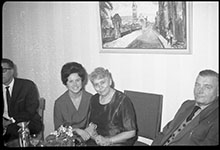 Feier des 60. Geburtstag von Franziska Lippert (Mitte), Hauptverwaltung, am 31. 10. 1963, lks. Hannelore Hungerland, re. Franz Wolf