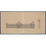 Grundriss und Vorderansicht der geplanten Erweiterung des Senckenberg-Museums an der Bleichstraße, mit Eschenheimer Tor (Franz von Hoven, 30. Juni 1898)